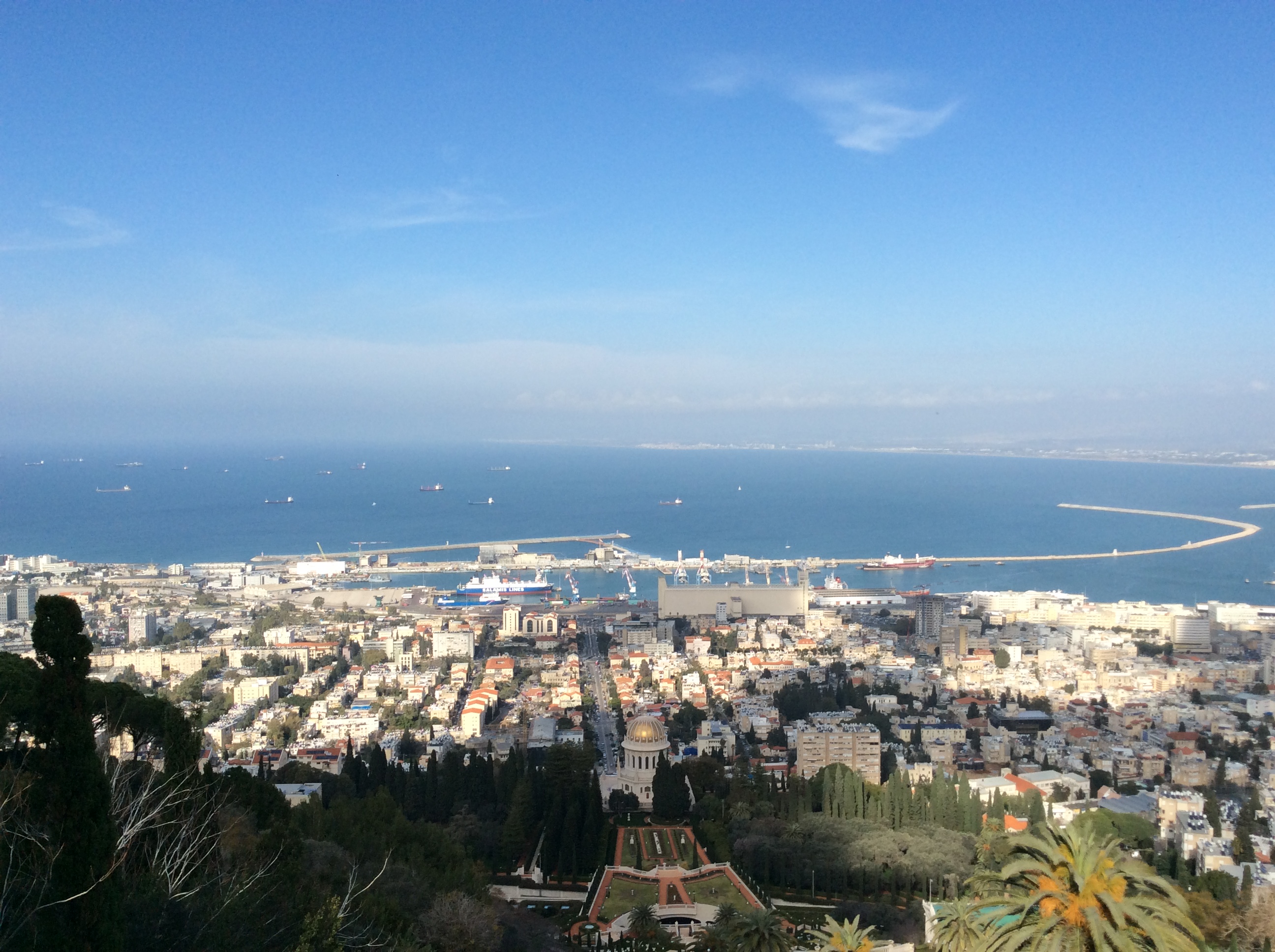 We then went on to Haifa, and after stopping at the church commemorating Elijah, walked down most of the steps in the Ba’hai gardens